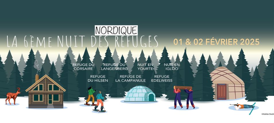 Ces 1er et 2 février 2025, pour la 6e édition nordique, 7 refuges du Massif ouvrent leur porte pour faire découvrir les Vosges différemment aux participants : randonnées en raquettes, nuit en igloo ou en yourte, trottinette tout terrain, chiens de traineau, biathlon insolite, diner en ferme auberge, etc…! L’objectif étant de profiter d’un week-end en montagne unique.