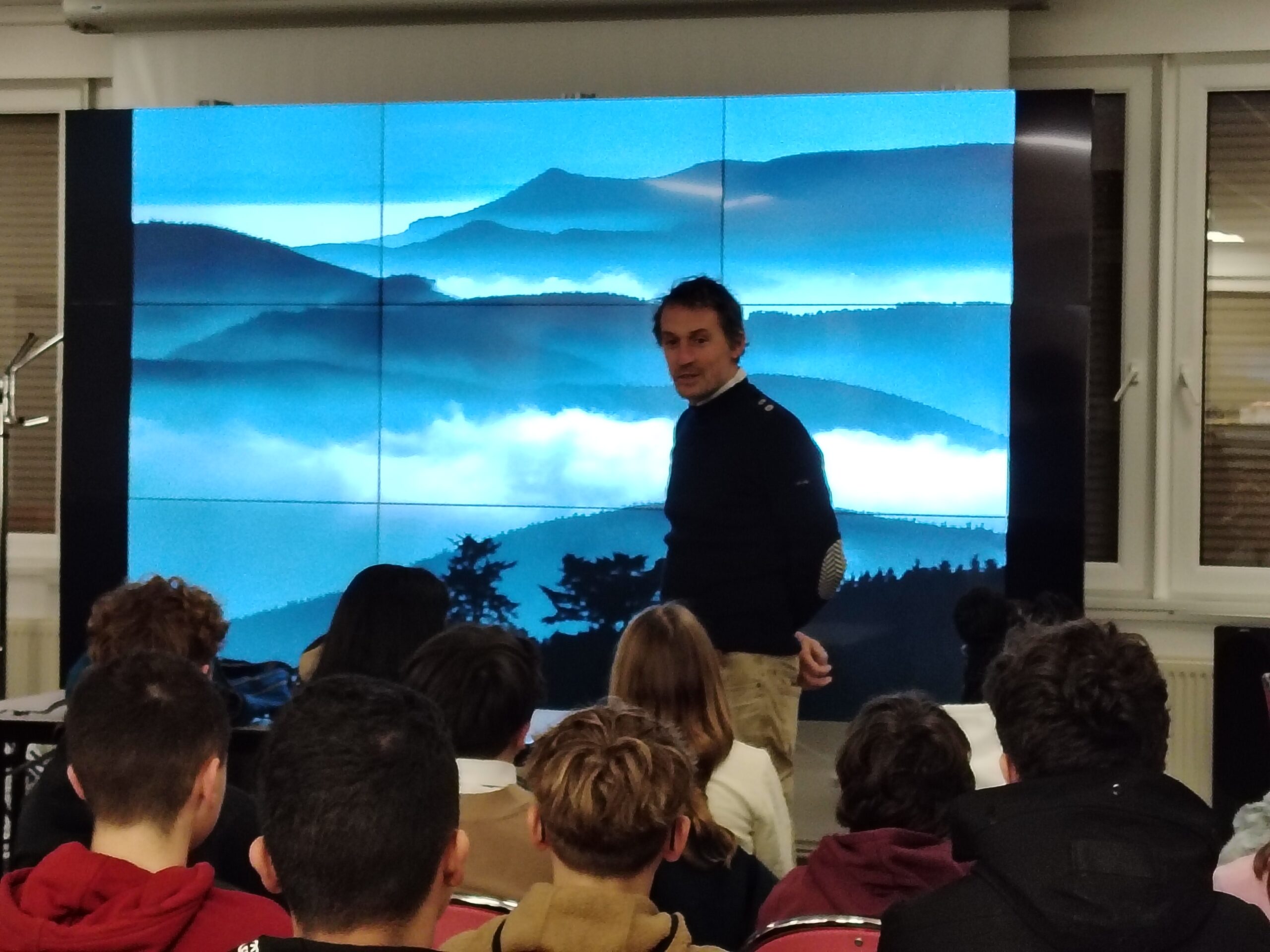 Dans le cadre du cours de français et de la thématique « L’Homme est-il maître de la nature ? », le photographe Vincent Munier est venu à la rencontre d’élèves de 5ème et de 4ème encadrés par leur enseignante Corinne Duflos et la documentaliste Prisca Rudatis.