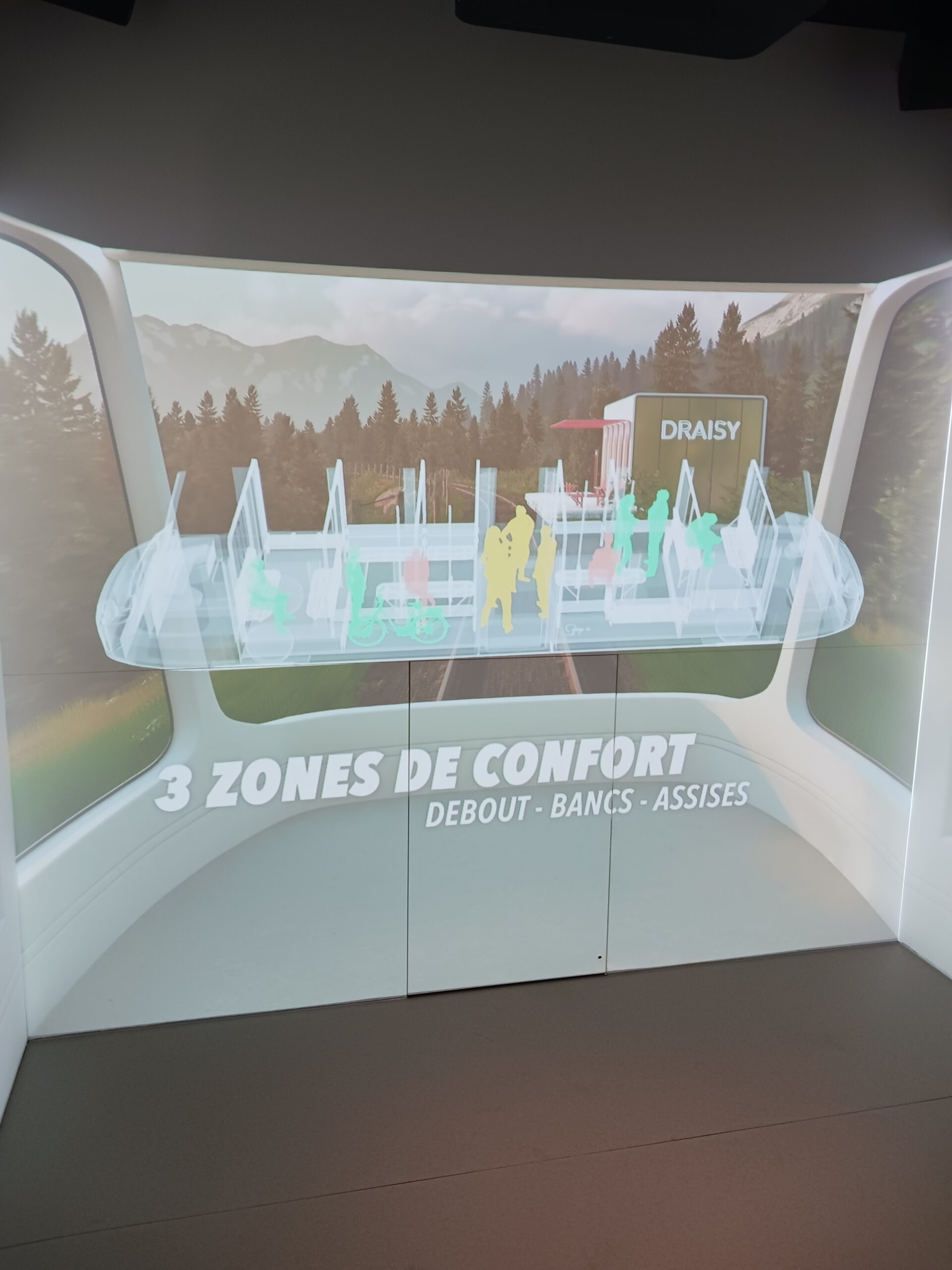 Les petites lignes nécessitent une simplification du matériel roulant : Draisy est doté d’une cabine de conduite innovante et d’un espace voyageurs modulaire et allégé, dans lequel on peut monter avec son vélo.