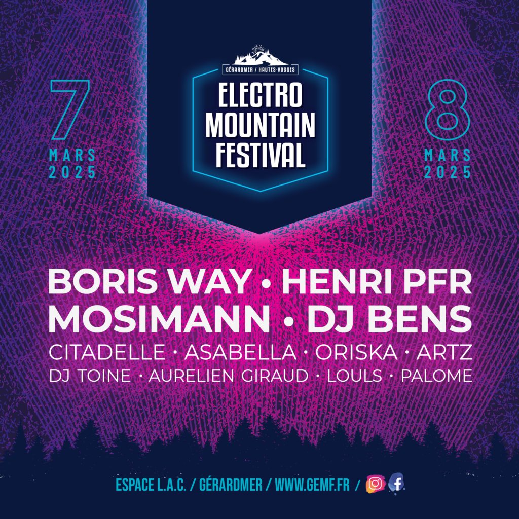 Rendez-vous les 7 et 8 mars 2025 pour célébrer ensemble la musique, l’énergie et l’hiver au Gérardmer Électro Mountain Festival !