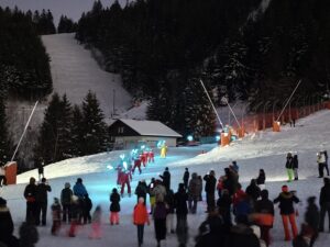 Jeudi à la tombée de la nuit, on renouait avec les traditions du côté du domaine skiable alpin de la Mauselaine où s’est déroulée la toute première descente aux flambeaux des moniteurs de l’ESF. Dans une sympathique ambiance musicale et devant un public nombreux sur le front de neige, les « monos » on descendu la piste du tétras, flambeaux à la main. Ils ont été accueillis sous un tonnerre d’applaudissements avant d’être imités par la petite troupe du jardin d’enfants a qui ils ont fait une haie d’honneur. Une bien belle manière de lancer la saison hivernale à Gérardmer !