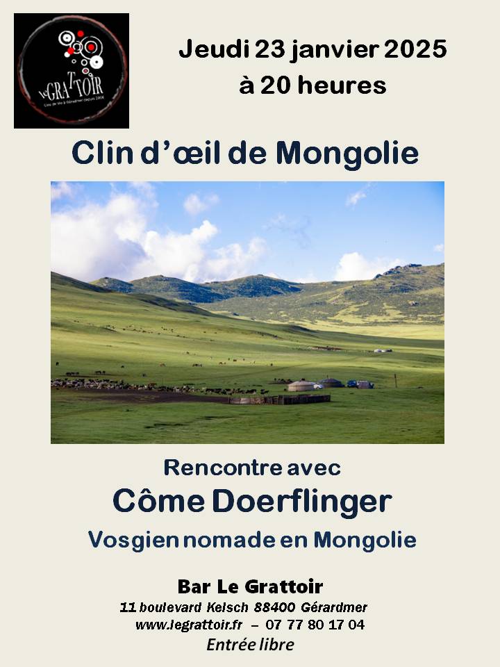 La prochaine conférence au bar Le Grattoir à Gérardmer aura lieu le Jeudi 23 janvier 2025 à 20 heures.