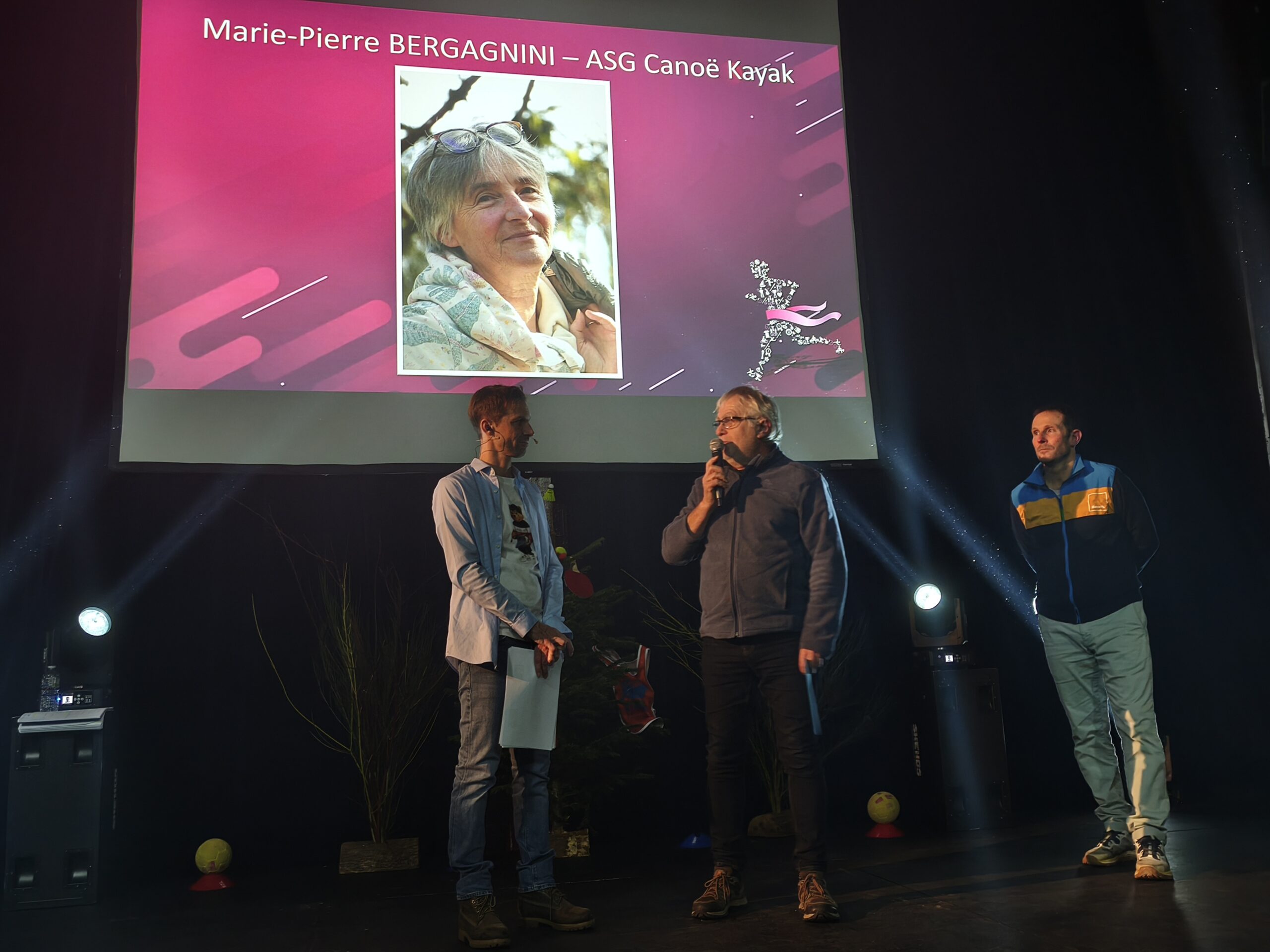 Deux autres bénévoles ont été mis sous le feu des projecteurs avec Marie-Pierre Bergagnini de l’ASG Canoë-Kayak dans la catégorie « bénévole comité » (investi au sein d’un comité comme son nom l’indique !). Toujours aussi investie dans son club depuis tant d’années, elle est aussi active au sein du comité où elle peut faire peser la voix de l’ASG. Une activité qu’elle associe à sa vie de grand-mère épanouie qui l’avait malheureusement retenue à la maison ce vendredi soir ! Enfin, Jacques Leroy a été élu « bénévole de l’année » par le jury, lui qui officie au sein du Karaté Club local qu’il a contribué à lancer. Son président de club s’est fait un plaisir de rappeler son parcours (voir la vidéo cliquez ici !) et l’ensemble de ses engagements associatifs, pas uniquement au sein du karaté. Sans être exhaustif, Jacques est aussi présent sur les rassemblements patriotiques, et c’est lui, le fameux boucher qui accompagne Saint Nicolas !