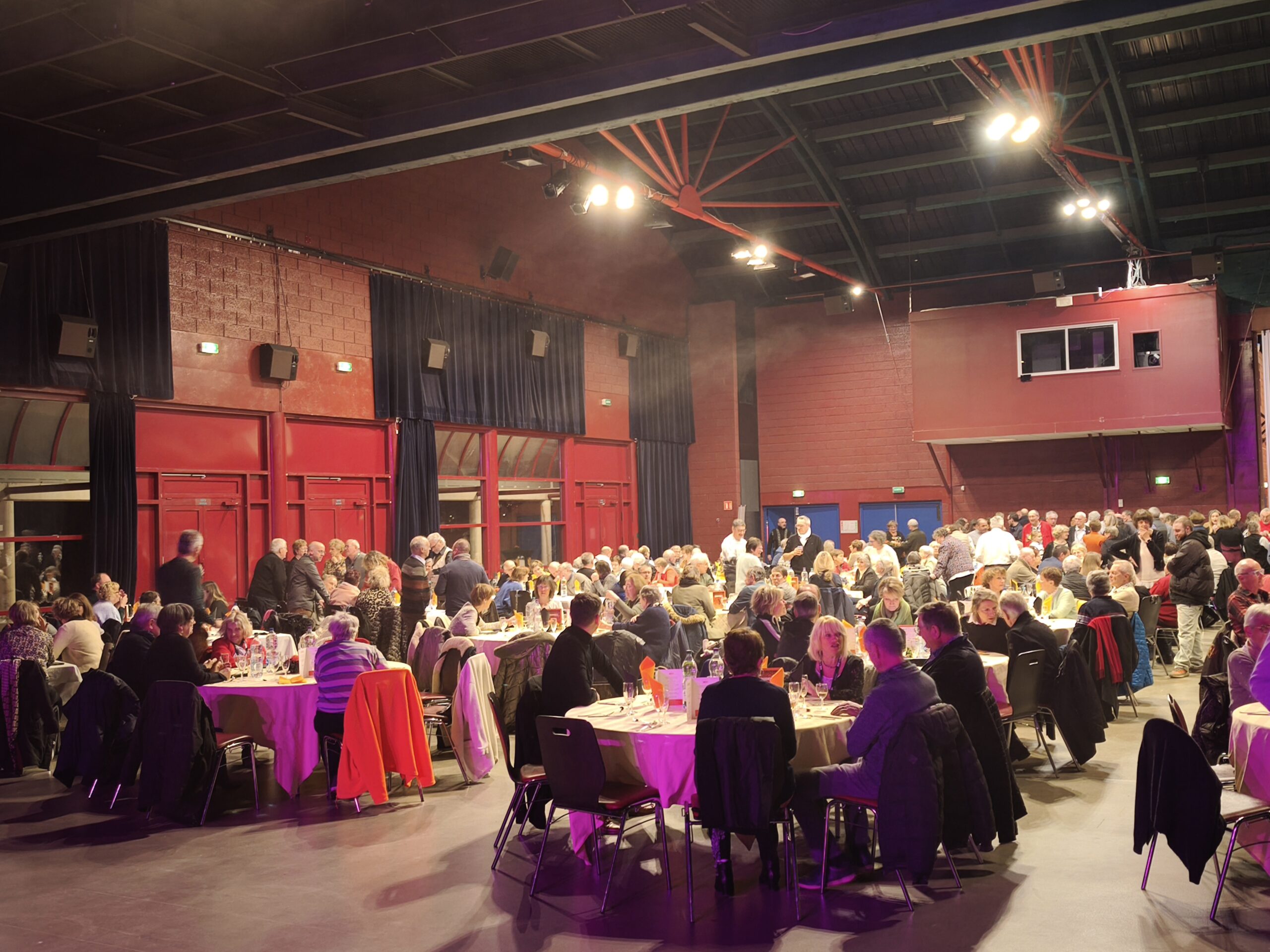« On attend environ 400 personnes ce soir. c’est un moment important pour la cohésion aussi,car il regroupe les bénévoles, mais aussi le monde associatif, le comité du festival, certains commerçants et bien sûr les hôteliers. Il y a une quarantaine d’établissements qui participent à la préparation du repas, une trentaine sont présents ce soir sur place, dont certains viennent avec une partie de leur staff. C’est un peu tout ça le savoir-faire gérômois » précise François Cornil, président du Groupement des Hôteliers-Restaurateurs. Ce dernier était accompagné de Romain Balland pour lancer les réjouissances, et ce dernier a tenu lui aussi à remercier les partenaires du festival, avec une mention spéciale pour les élèves, les professeurs et la direction du lycée hôtelier. Quant à Xavier Aubert, il n’a pas manqué de saluer une dernière fois Pierre Sachot pour l’ensemble de son travail et de son engagement. Rappelons qu’il a transmis le flambeau à Nanou Villemin, pour qui c’était donc le premier repas des bénévoles en tant que présidente !