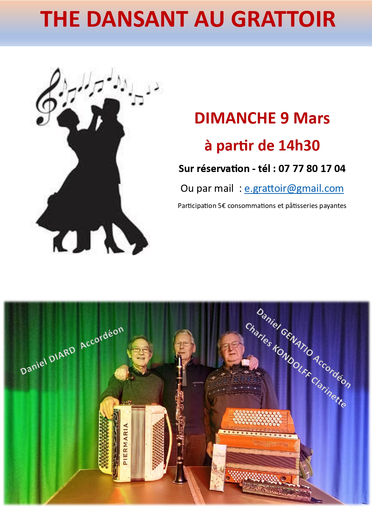 Le premier Thé Dansant au Grattoir aura lieu le dimanche 9 mars à partir de 14 h 30.