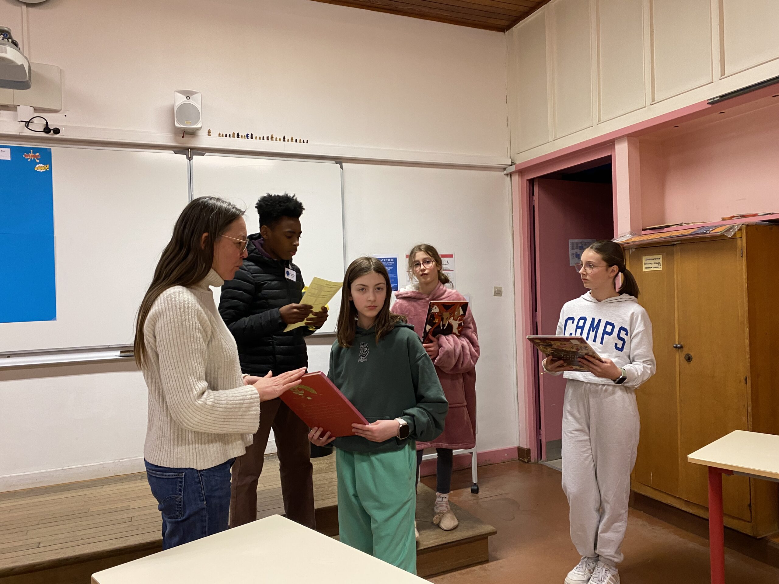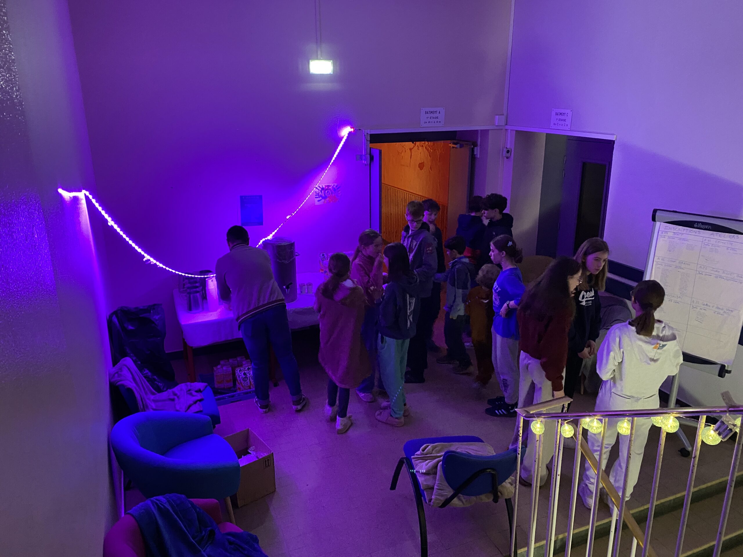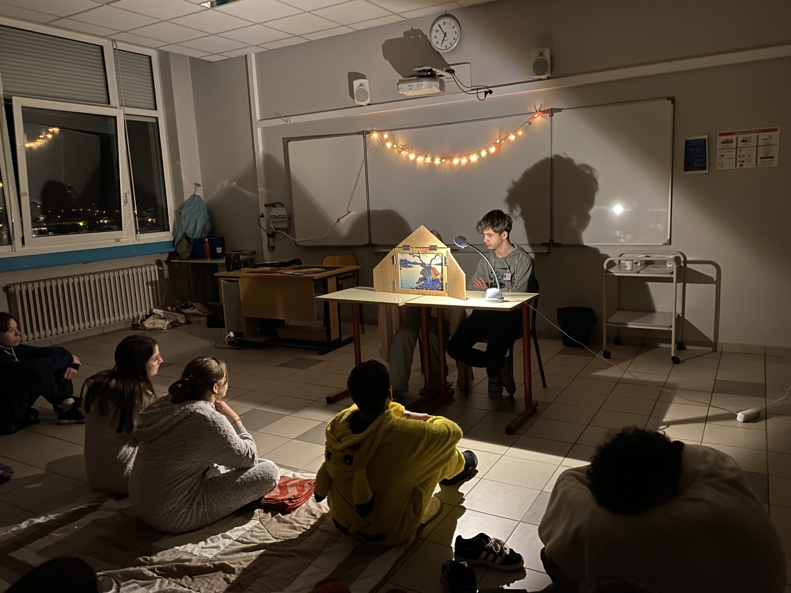 Les élèves du CVC ont choisi de faire découvrir le collège de manière « insolite et surprenante », et ont créé une ambiance chaleureuse et feutrée avec des lumières tamisées, de la musique douce, des coins cozy. L’enseignante et documentaliste Prisca Rudatis et la CPE Mélina Gegout les ont accompagnés pour la mise en œuvre. Dès l’invitation à cette aventure nocturne le ton était donné : « si tu le souhaites, enfile tes chaussons et ton pilou pilou, prends ton plaid et ton coussin et choisis ton programme ». Suivant la thématique de cette année qui est le patrimoine, les organisateurs ont proposé des ateliers autour de la lecture, des arts, du bien-être, du jeu, de la connaissance et invité à rencontrer des professionnels du livre et des artistes. Onze ateliers étaient répartis dans les salles de classe, certains en accès libre d’autres sur inscription : l’atelier Dessin mangas animé par l’illustrateur Cayu, un Timeline Bande dessinée pour voyager dans le temps, Les loups noirs de Sibérie, une adaptation du jeu du Loup-Garou, Rencontre de l’autrice Julia Billet qui proposait une lecture de nouvelles, une présentation du métier et un atelier d’écriture, un Concours de lecture à voix haute, un Quiz : Gérardmer et son patrimoine olympique, grâce aux documents et photos de Baptiste Morel, Aux portes de l’imaginaire avec le jeu de société Dixit, Histoires en Kamishibaï, un théâtre d’histoires japonais, Autour