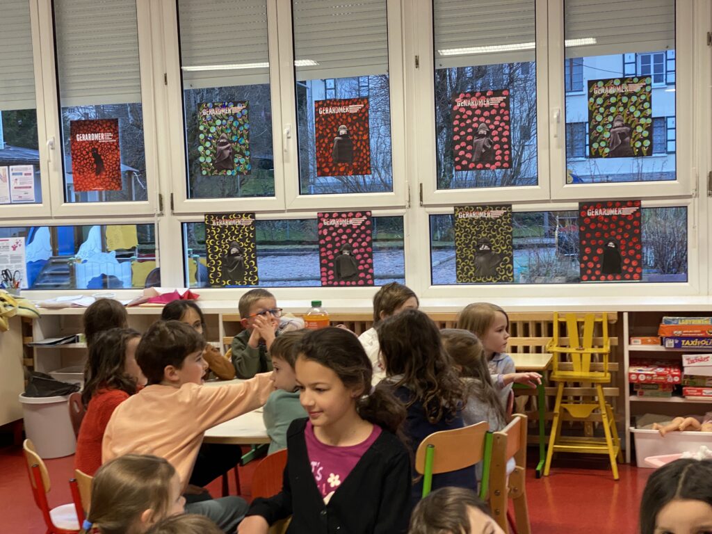 Tous les ans les élèves de la maternelle au CM2 travaillent avec leurs animateurs après la classe sur le thème du Festival. Cette année ils ont choisi de revisiter l’affiche officielle 2025 et leurs œuvres ont été exposées à la Villa Monplaisir. Les affiches sont aujourd’hui présentées à l’école Jean Macé et une soixantaine d’enfants s’est retrouvée autour d’un goûter pour une journée de valorisation. Les élus et les services de communication et jeunesse de la mairie qui ont chapeauté le projet sont venu inaugurer l’événement et saluer les artistes.