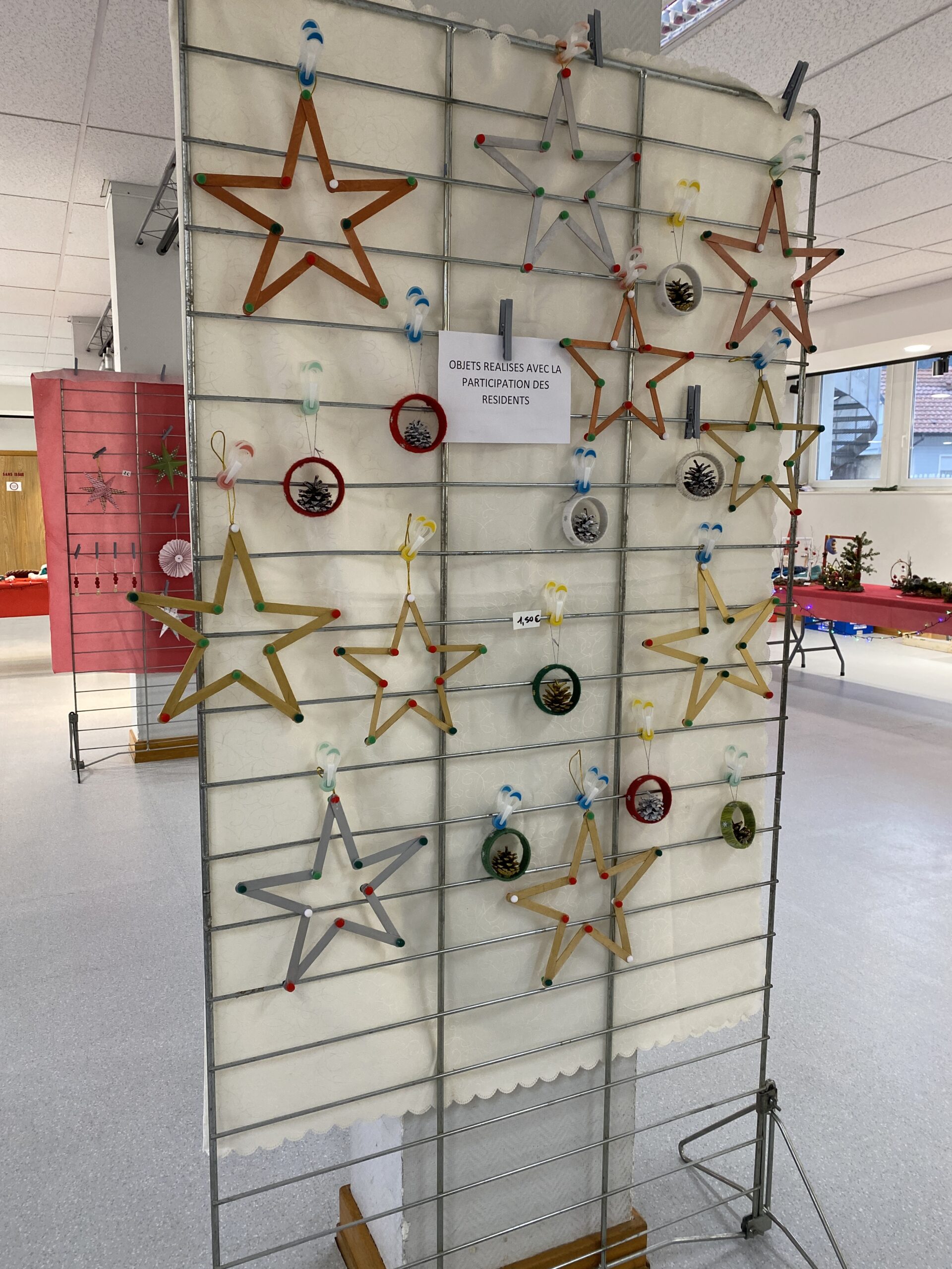 Ils sont une dizaine de bénévoles à accueillir le public et proposent leurs réalisations à la vente au profit des résidents de l’EHPAD Léa André. Les articles exposés sont entièrement fait main par leurs soins, que ce soit pour décorer la table ou le sapin ou pour faire ses cadeaux de Noël, il y a un large choix à prix tout doux. Marie-Christine Cancian était fière de présenter les stands avec notamment les « nouvelles compositions florales modernisées qui sont des produits phares » ainsi que les bijoux confectionnés à l’aide de graines de la Guadeloupe, une nouveauté cette année. Sans oublier les incontournables biscuits de Noël qui partent comme des petits pains. Les résidents ont, pour leur part, fabriqué des étoiles et des cartes de vœux.