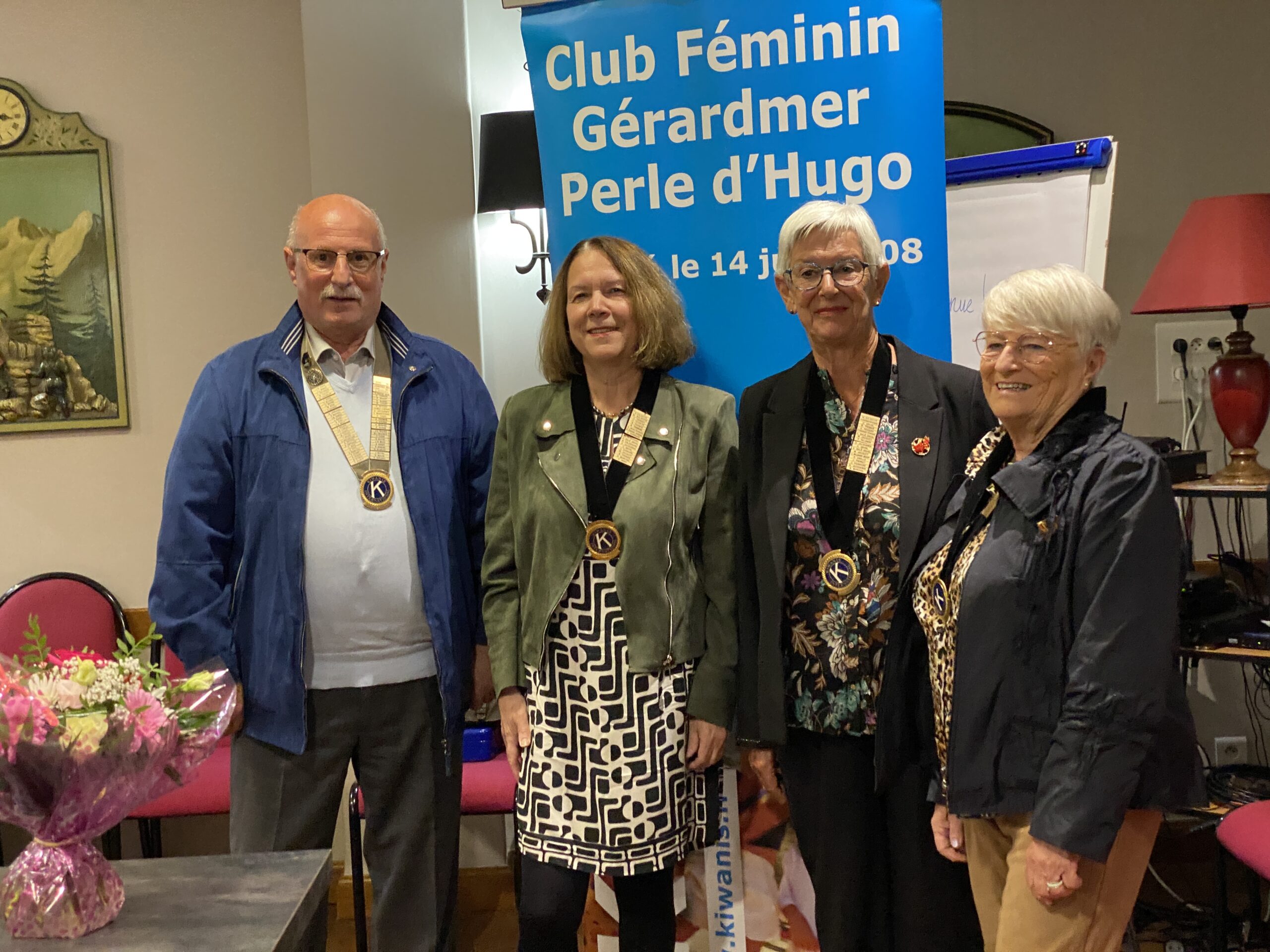 Les 22 kiwaniennes et leurs conjoints s’étaient réunis mardi soir, en présence du Lieutenant Gouverneur Vosges Lorraine Philippe Giorgi, pour remettre le Collier aux nouvelles membres du bureau qui vont siéger pour une année. Martine Galmiche, de Basse sur le Rupt, est élue présidente, Marie Claude Chevrier va assurer la trésorerie quant à Viviane Valentin lui revient le poste de secrétaire et Christiane Grivel accède à la vice présidence. C’est l’ex vice présidente qui a procédé à la passation au nom de la présidente sortante Martine Stouvenel qui est malade. 2 nouvelles adhérentes sont venues grossir les rangs cette année et donner de leur temps pour les nombreuses actions qu’elles mènent au service des enfants du monde. Car pour le Kiwanis « Le bonheur d’un enfant n’a pas de prix ! ». La programmation pour l’année à venir reste quasiment identique. La présidente souhaite juste transformer le karaoké de l’an dernier en soirée Celtique qui aura lieu au Tholy pour la St Patrick le 29 mars et propose d’ajouter une vente de fleurs sur le marché de Gérardmer au mois de mai.