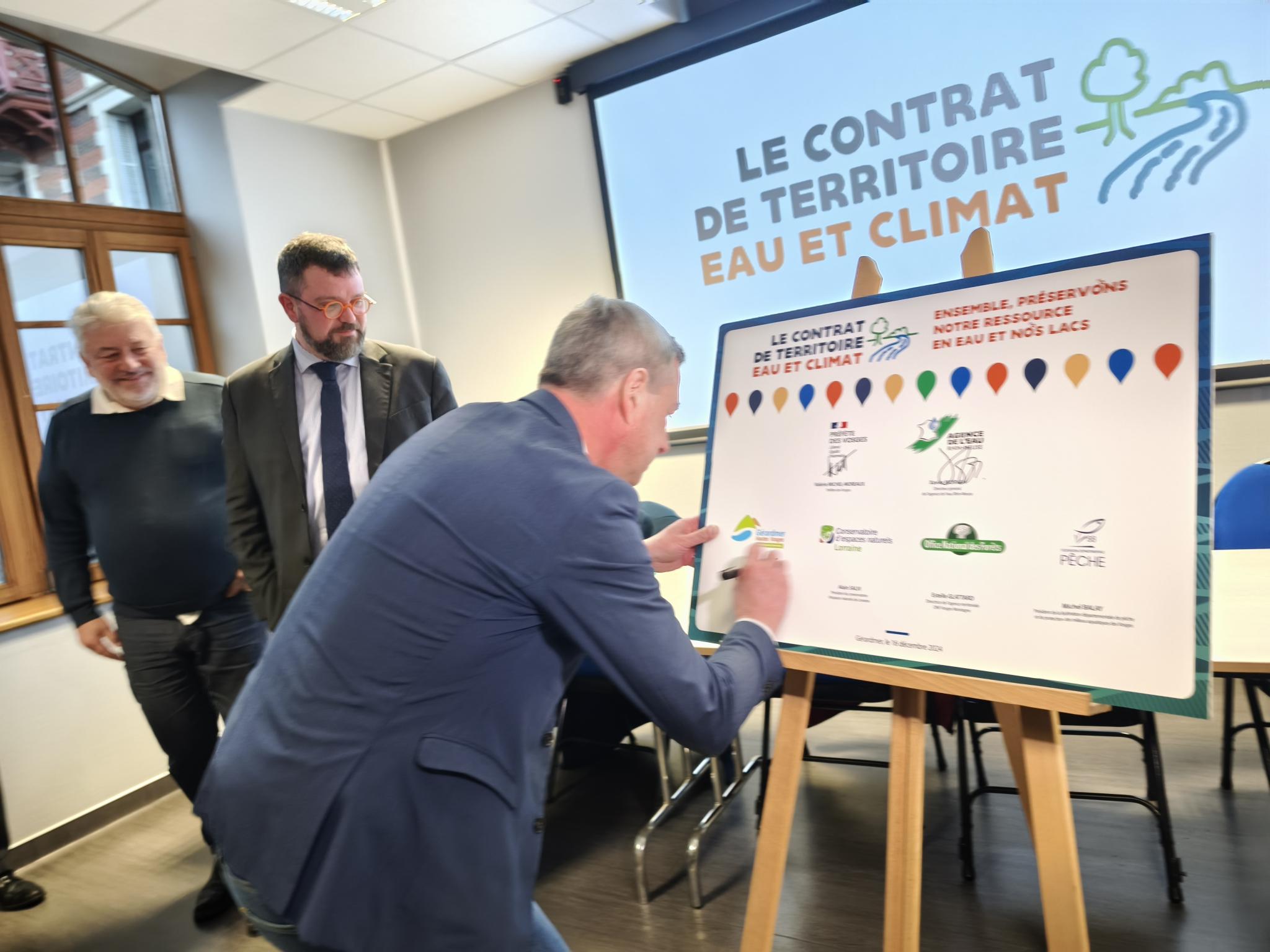 Après un petit retard pris sur le calendrier initial, la communauté de communes Gérardmer Hautes Vosges (CCGHV) a officialisé la signature du contrat de territoire “Eau et Climat” (CTEC) avec l’agence de l’eau Rhin-Meuse et les partenaires signataires que sont l’Office national des forêts (ONF), le conservatoire d’espaces naturels de Lorraine (CEN), ainsi que la fédération départementale de pêche et de protection des milieux aquatiques des Vosges.