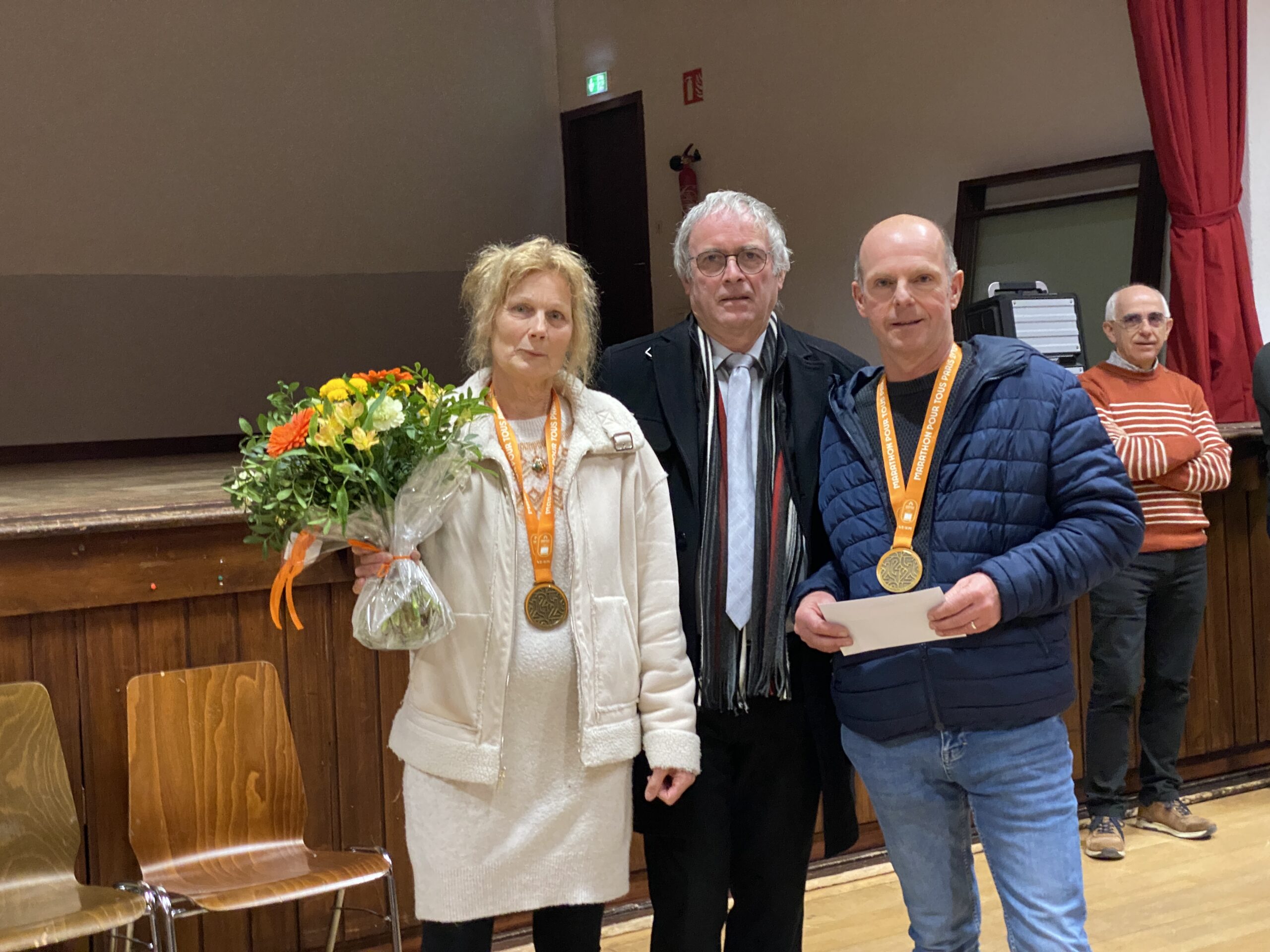 L’ajointe au maire Jocelyne Melin a invité Nathalie et Patrick Valentin à venir raconter leur aventure. Coureur depuis plus de 30 ans, ce couple a déjà participé à plusieurs marathons, celui de Paris avait été leur 1er à l’âge de 49 ans. Pour ce marathon international ils se sont préparé pendant 3 ans pour valider les objectifs requis et ont eu la chance d’être tirés au sort en 2023. C’est donc le 10 août 2024 à 22 h qu’ils ont pris le départ parmi les 20 024 autres coureurs sélectionnés sur les 480 000 inscrits. « Une course très dure sous une chaleur étouffante » racontent Nathalie et Patrick Valentin « Que du bonheur, une ambiance de fou tout le long du parcours, des jeux de lumières, des groupes musicaux, les supporters, des moments uniques ! Et au bout de 5 heures on a franchi la ligne d’arrivée » Cette performance méritait bien toutes les félicitations de la municipalité !