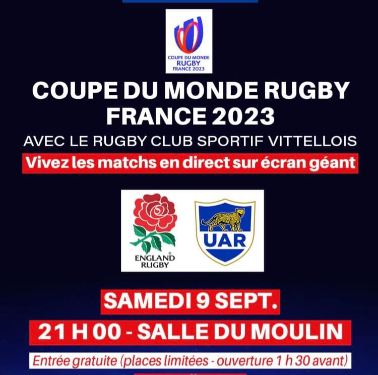 Dans le cadre de la Coupe du Monde Rugby France 2023, l’ambiance est assurée du côté de la Salle du Moulin. Le Rugby – Club Vittellois attend un très nombreux public, pour la retransmission sur grand écran du match qui se jouera ce soir 9 septembre 2023 à 21 heures 30.