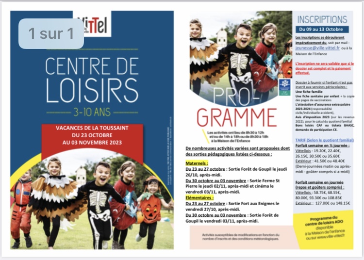 C’est sur inscription entre le 9 et 13 octobre 2023, que tout se joue pour les inscriptions aux vacances de la Toussaint à destination des enfants Vittellois. Les parents devront inscrire leurs enfants entre ces deux dates, auprès du Service Enfance et Jeunesse par mail, où à la Maison de l’Enfance au 71 rue Marcel Soulier.