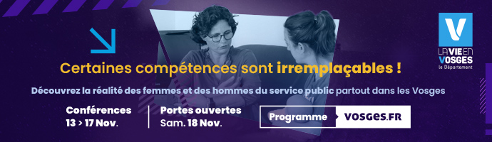 Du 13 au 17 novembre, 5 conférences seront dispensées sur l’ensemble du territoire de 19h à 20h30 avec pour thèmes : l’agriculture, les services, l’économie, la jeunesse et le cadre de vie. Elles sont accessibles à tous sur inscription sur vosges.fr