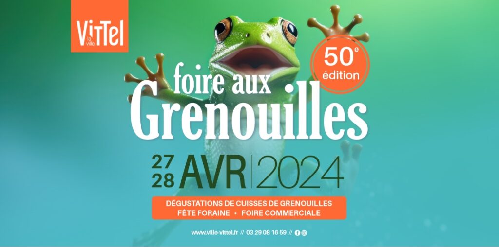 La foire aux grenouilles animera les rues de Vittel le week-end des samedi 27 et dimanche 28 avril avec fête foraine, dégustations de cuisses de grenouille, foire commerciale, animations et défilé.