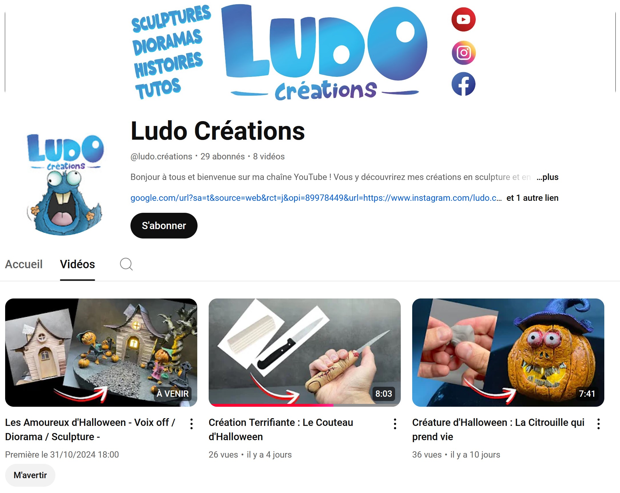 Le lapin maléfique Sombre-Coeur, la fin tragique du zombie Victor, les Amoureux d’Halloween d’ici quelques jours… le Fraxinien déborde d’imagination. Et pendant qu’il raconte ses différentes histoires, les figurines et éléments de décor prennent vie sous l’oeil des spectateurs. L’objectif personnel à travers cette chaîne YouTube, lancée en août dernier, est « de pouvoir garder un souvenir, une trace, de ce que j’ai sculpté, avec la fierté de me dire que j’ai réussi à le faire. C’est aussi une opportunité pour échanger avec d’autres sculpteurs… et pourquoi pas, si la chaîne fonctionne, de donner des cours de sculpture plus tard. Je ne vais pas m’en cacher, j’aimerais à terme pouvoir vivre de cette passion. »