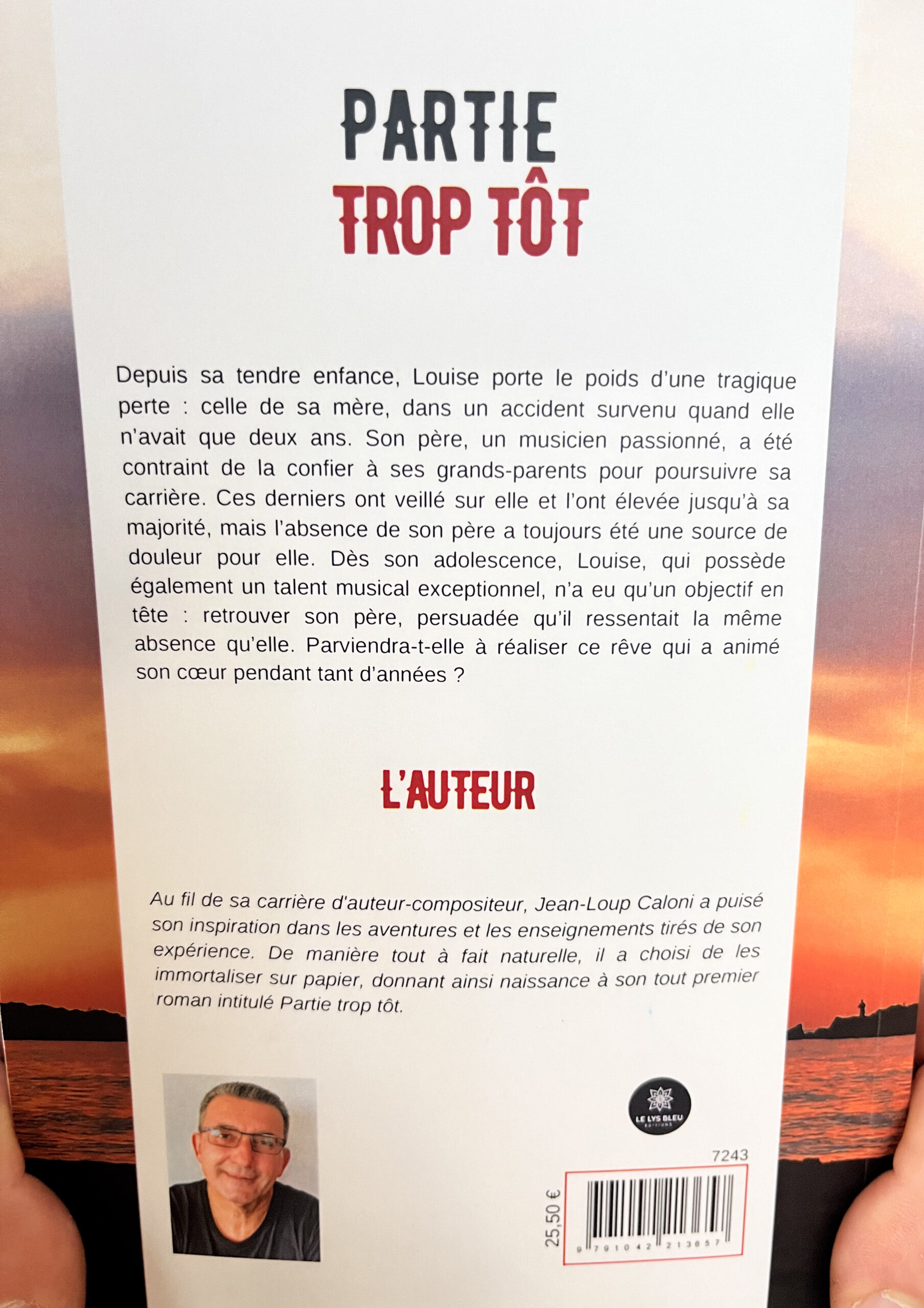 La trame du roman était dans un coin de sa tête depuis une trentaine d’années, mais pourtant, ce n’est qu’en décembre 2023 qu’il publie son roman « Partie trop tôt », après deux ans et demi d’écriture. Il y évoque l’histoire de Louise, qui porte depuis sa plus tendre enfance le poids d’une tragique perte : celle de sa mère, dans un accident survenu quand elle n’avait que deux ans. Son père, un musicien passionné, a été contraint de la confier à ses grands-parents pour poursuivre sa carrière. Ces derniers ont veillé sur elle et l’ont élevée jusqu’à sa majorité, mais l’absence de son père a toujours été une source de douleur pour elle. Dès son adolescence, Louise, qui possède également un talent musical exceptionnel, n’a eu qu’un objectif en tête : retrouver son père, persuadée qu’il ressentait la même absence qu’elle.