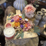 Chaque année, nous essayons d’innover en proposant diverses compositions avec des artisans locaux : cette année, nous proposons des planches en partenariat avec la Boucherie Remy. Elles sont composées d’une planche à découper en bois avec une gravure personnalisée faite dans notre boutique, d’une fleur séchée, d’une bougie et, bien entendu, de la charcuterie.