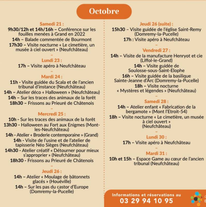 * Informations et réservations auprès de l’Office de Tourisme de l’Ouest des Vosges au 03.29.94.10.95 Programme à consulter ou à télécharger sur https://www.tourisme-ouest-vosges.fr/pratique/brochures/