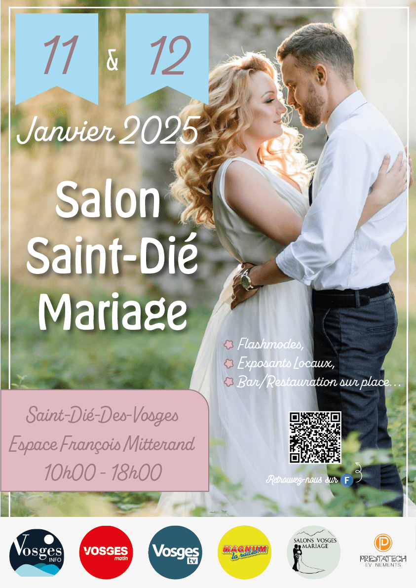 Pour suivre l’actualité du Salon Saint-Dié Mariage, rendez-vous sur la page Facebook Salons Vosges Mariage.