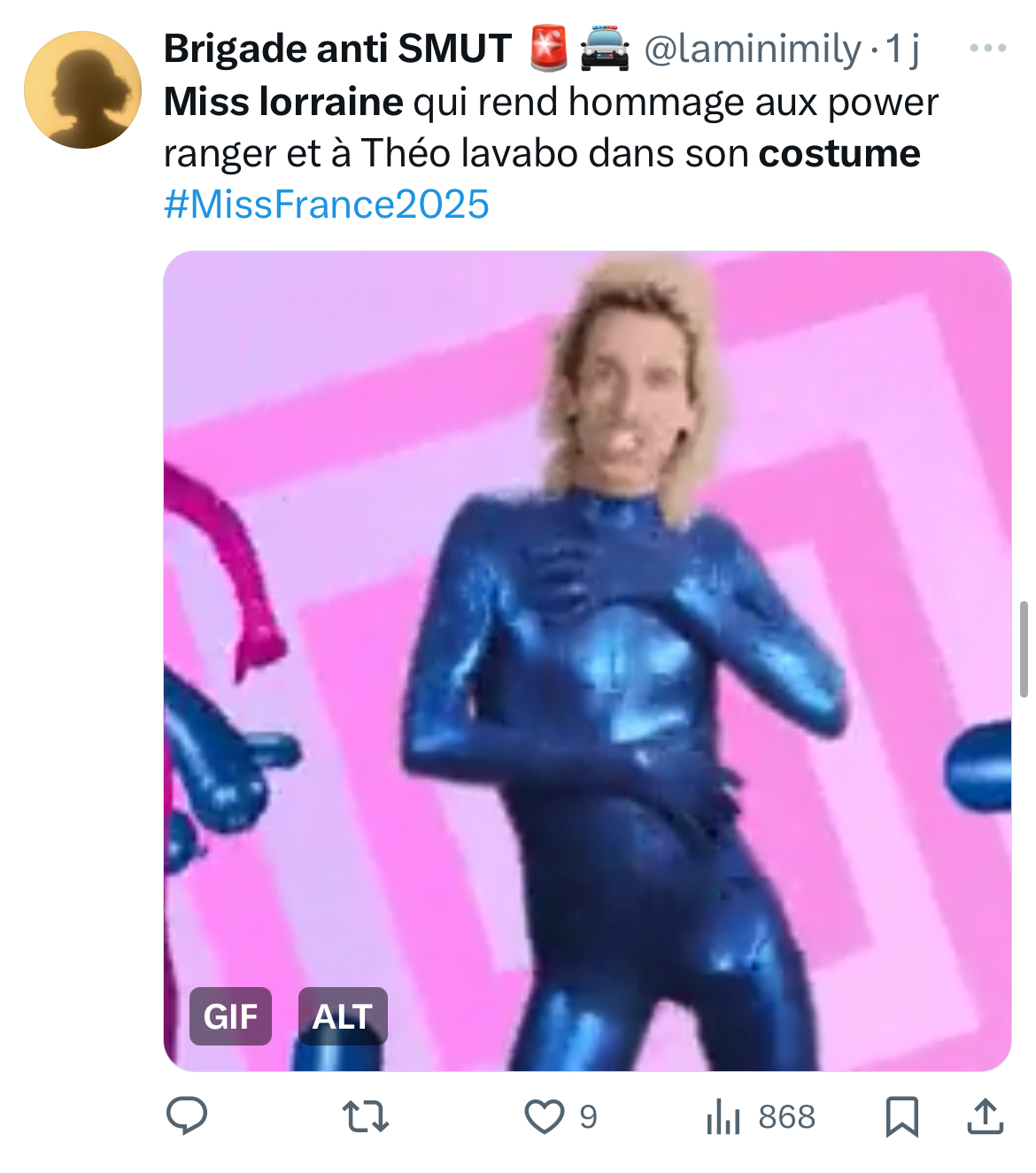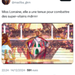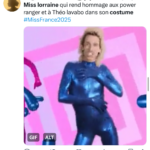 Comme l’an passé – où la Miss Lorraine arborait un costume en forme de table – le costume régional a suscité de vives réactions humoristiques sur les réseaux sociaux et notamment sur X (Twitter). Nous avons fait une sélection pour vous des réactions les plus drôles :