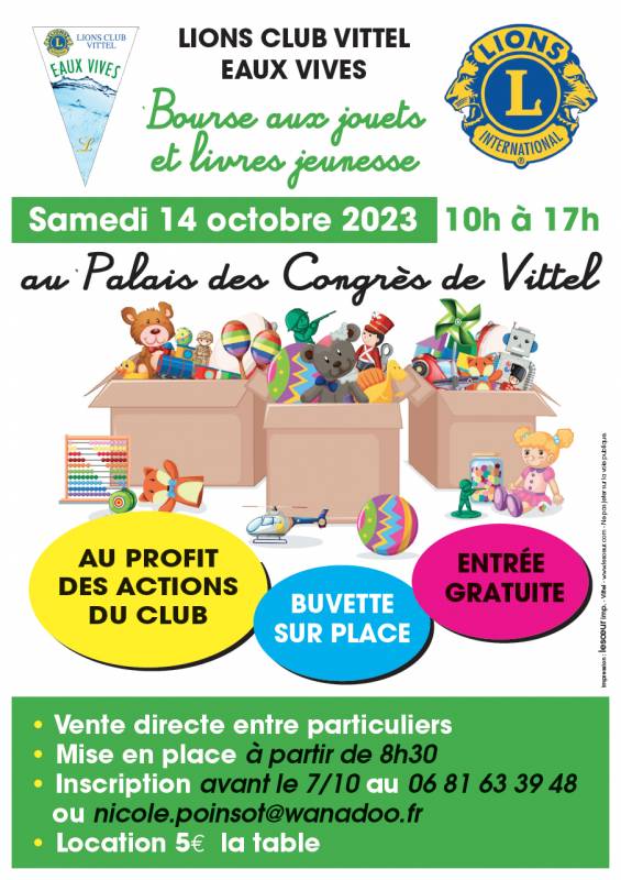 Les amateurs de bonnes affaires sont nombreux en ces temps difficiles, et se lèveront très tôt pour profiter des meilleures occasions à l’occasion de la tenue de la Bourse aux jouets de Vittel. Ce rendez – vous est proposé le 14 octobre 2023 entre 10 heures et 17 heures, dans les salles du Palais des Congrès de la ville thermale. Cette bourse aux jouets est tenue toute la journée par l’ensemble de l’équipe des bénévoles du Lions, et au profit des actions du Club.