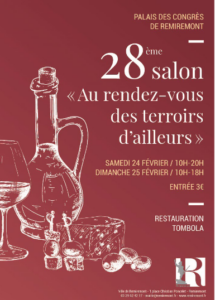 Pour la 28ème édition du Salon « Au Rendez-vous des Terroirs d’Ailleurs », une quarantaine d’exposants venus de toute la France (Corse, Alsace, Jura…) vous proposera le meilleur de la gastronomie et du savoir-faire de leurs régions.