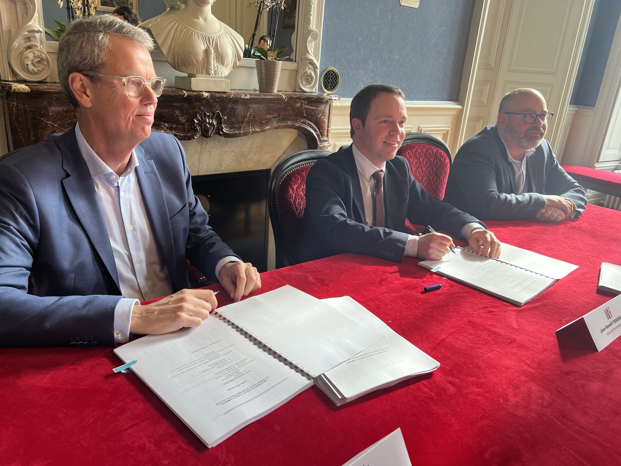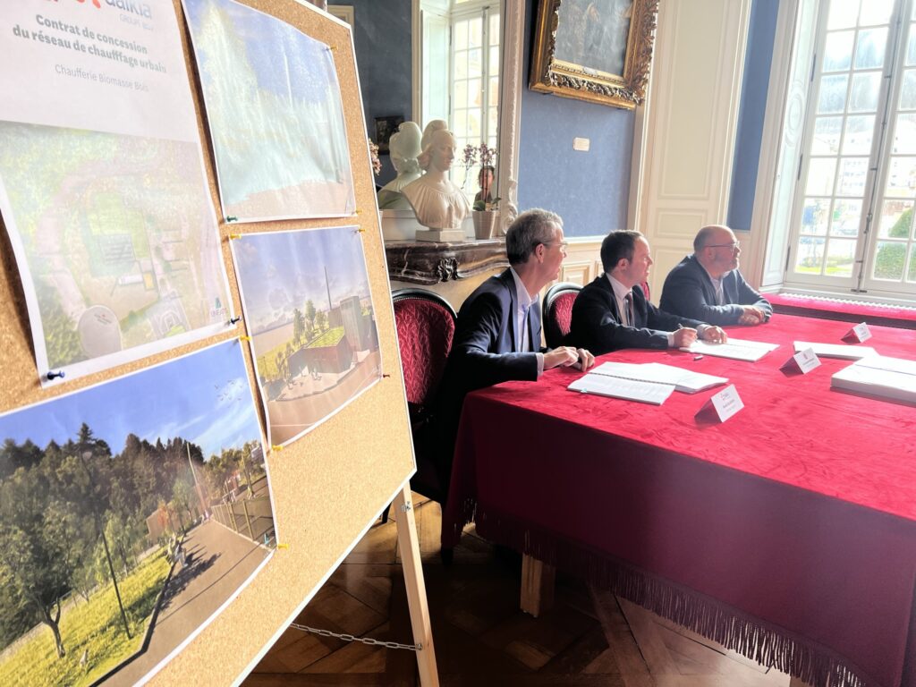 C’est un tournant historique pour la ville de Remiremont ! Ce lundi en fin de matinée, le maire, Jean-Benoît Tisserand, a signé avec l’entreprise Dalkia la convention de concession du réseau de chauffage urbain au Salon des Mariages de l’Hôtel de Ville. D’ici septembre 2025, la cité des Chanoinesses va se doter d’un réseau énergétique à 95% renouvelable avec l’installation d’une chaudière biomasse au Rhumont qui alimentera une soixantaine de bâtiments publics.
