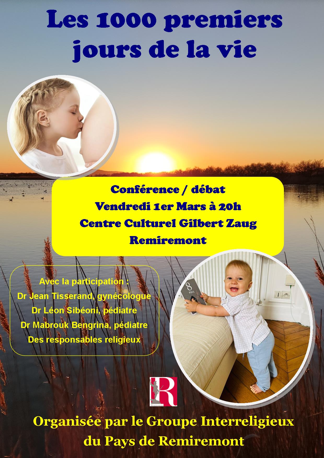 Le Groupe de dialogue interreligieux de Remiremont et ses environs organise une conférence sur le thème « Les 1 000 premiers jours de la vie » : Vendredi 1er mars 2024, à 20h, au Centre Culturel Gilbert Zaug de Remiremont