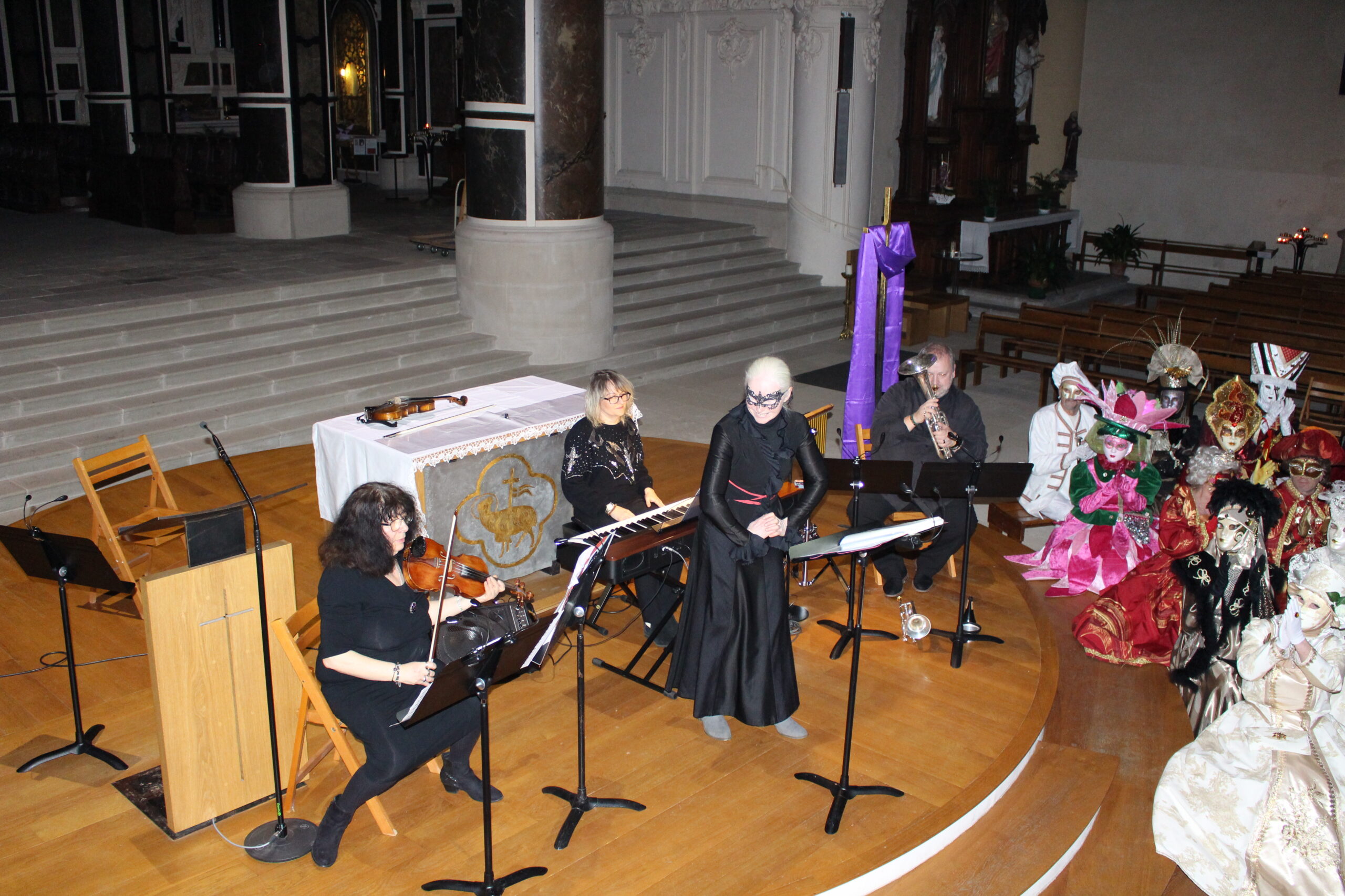 Bravo aux Musiciens pour ce concert : Nelly MATCHABELI au Violon, Mathilde MICLO Voix et Violon, Natalia HURAVA au Piano et Pierre-Marie BUDELOT au Bugle et au Saxhorn alto.