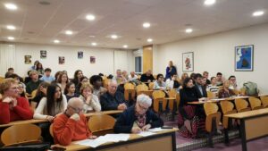 Jean-Charles Tisserand, professeur rotarien conduisait cette sympathique confrontation des deux équipes. Après les questions du jury, les candidats ont dû prouver leurs qualités oratoires autour d’une question surprise, la fameuse question jonquille : « Prise de tête ou prise de terre ? ».