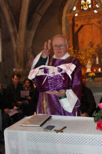 Ce dimanche matin, la fête a débuté par un office religieux dans la chapelle presque trop petite pour accueillir les fidèles, certain venant depuis des décennies et d’autres heureux de participer pour la première fois. Au cours de la cérémonie les brioches (découpées en morceaux) ont été bénies et distribuées à tous à la sortie de l’office.