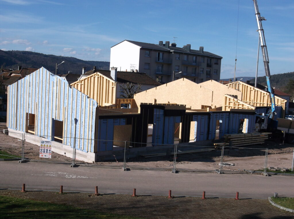 Après la grande dalle coulée (notre article du 14 février dernier) la future Maison de Santé Pluridisciplinaire dévoile sa physionomie avec la mise en place des différents éléments de son ossature bois. Depuis le début de la semaine, les spécialistes de l’entreprise Poirot de Fresse-Sur-Moselle, procèdent à la mise en place des murs extérieurs et des grands éléments transversaux.