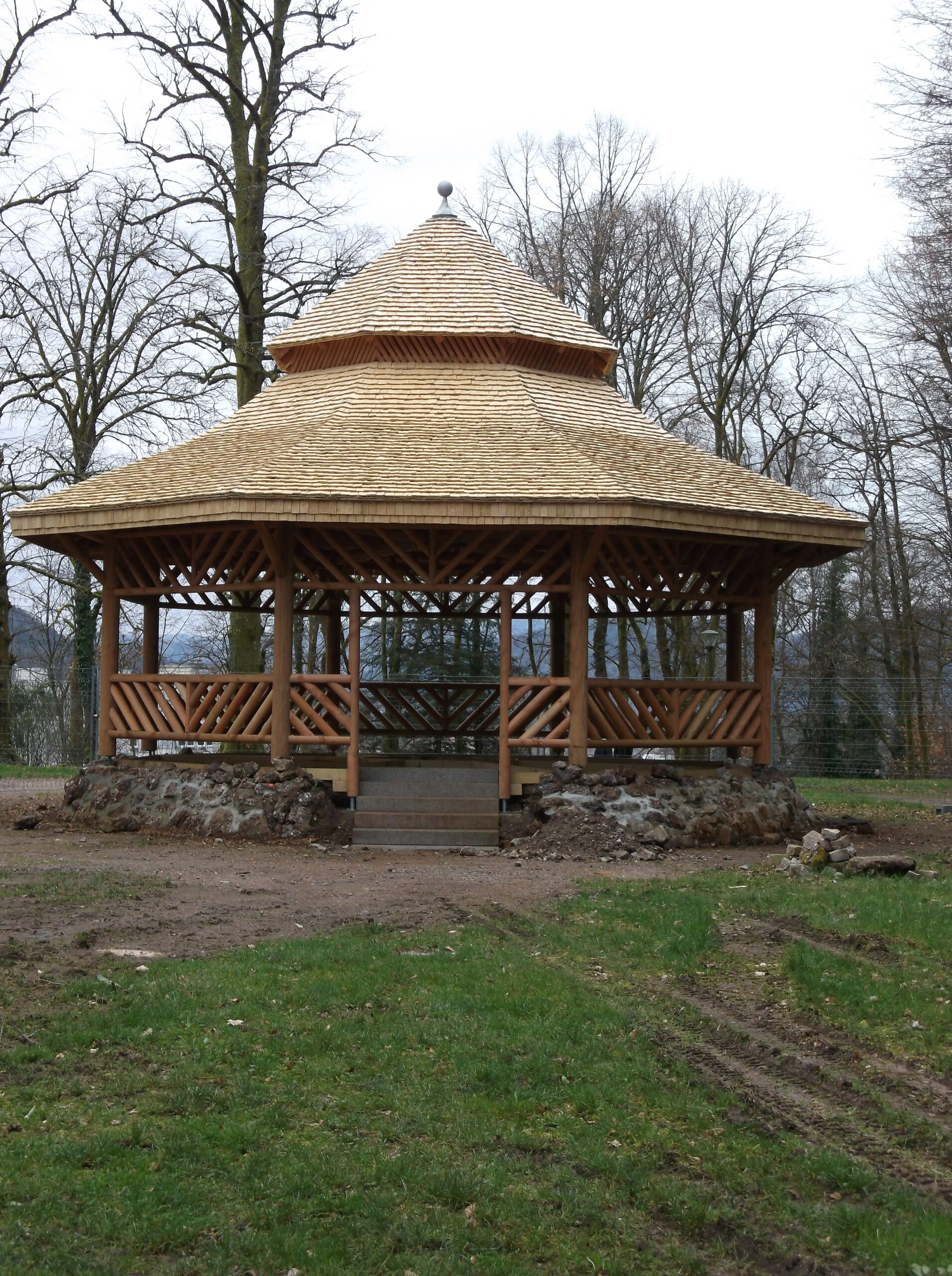 Le chantier des ouvrages de reconstruction du Kiosque du Calvaire a débuté au cours du mois de décembre dernier. Favorisés par un hiver plutôt propice, les travaux ont pu connaître une belle avancée et arrivent à leur terme. Le nouveau kiosque se présente désormais fièrement, authentique à son prédécesseur qui avait subi les affres du temps…