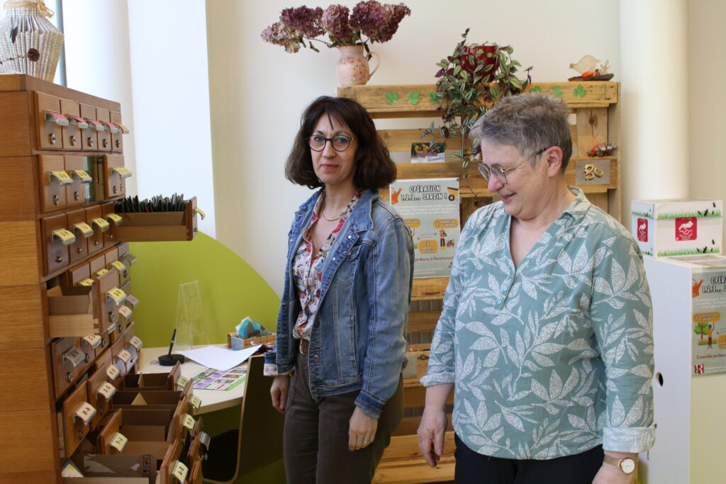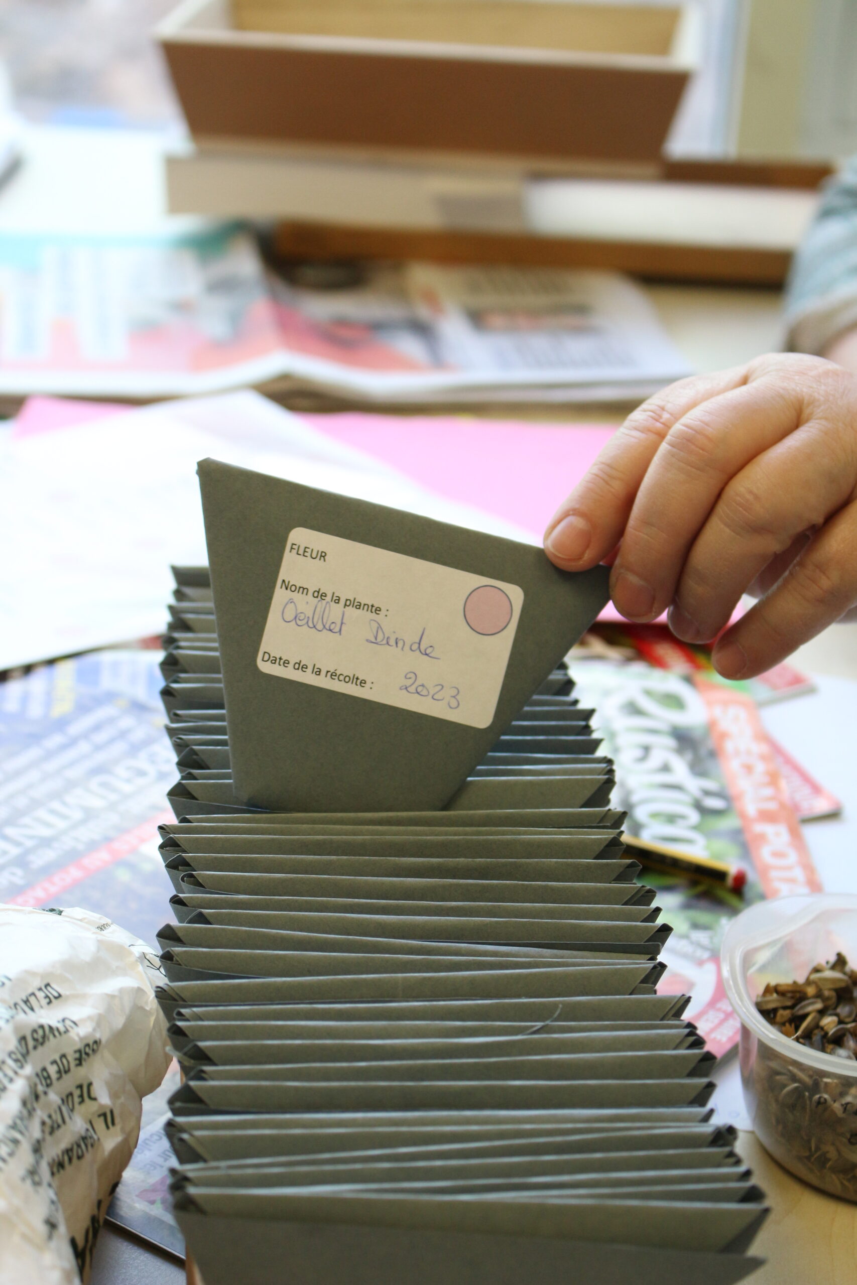 Après avoir eu lieu ce samedi matin au Val d’Ajol où 16 personnes sont passées, cet après-midi c’est à la Médiathèque de Remiremont que cela se passe. Deux salariées de la médiathèque, Aurore et Catherine, étaient présentent, ainsi qu’une jeune stagiaire et trois passionnés de graines et de jardinage tous affairés à confectionner des sachets, à extraire des graines séchées et à mettre en sachet.