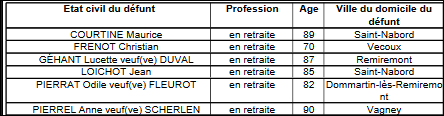 Deprecated: Use of "parent" in callables is deprecated in /project/VIDEV/web/app/plugins/simple-lightbox/includes/class.options.php on line 501 Les décès et les naissances de la semaine - Remiremont Info