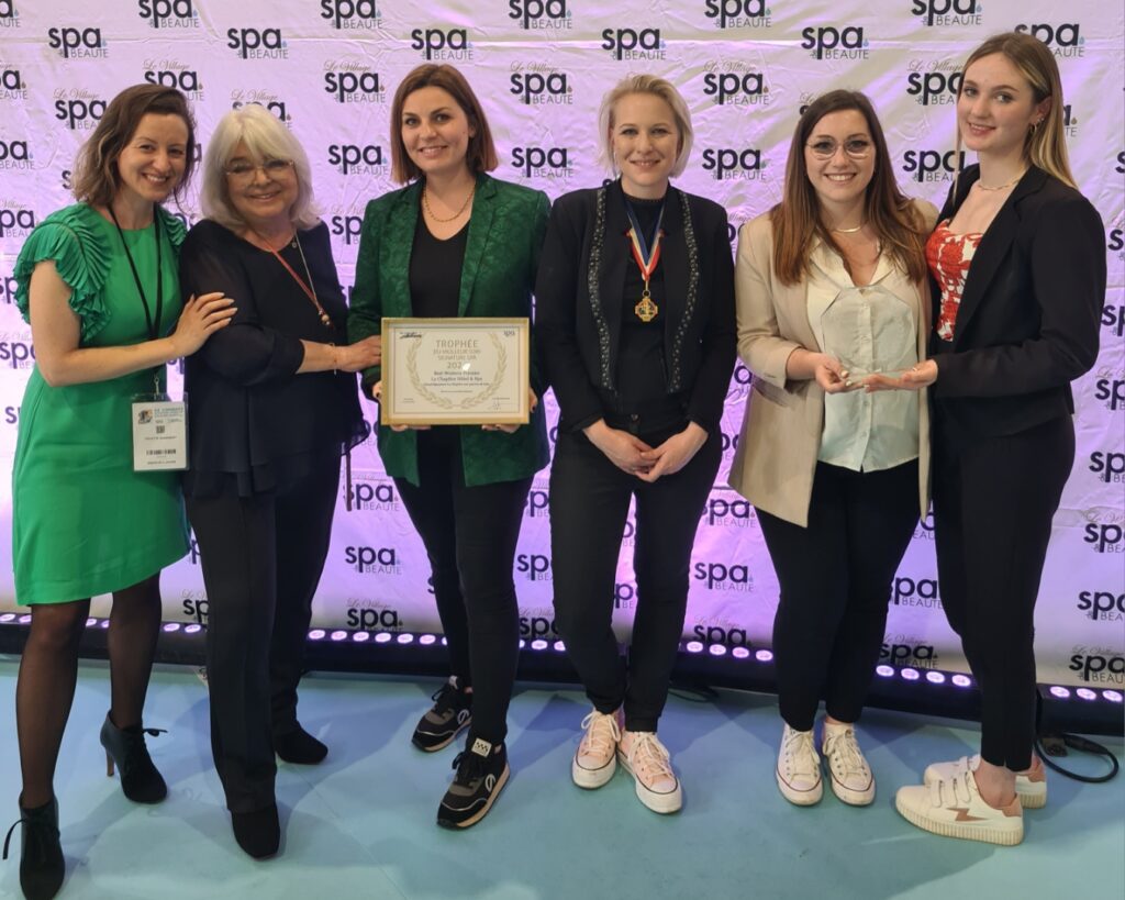 Cette récompense «vient témoigner notre engagement constant envers l’excellence et l’innovation dans le domaine du bien-être et de la relaxation » témoigne Charlotte Drapp, la directrice du lieu, fière d’arborer le fameux titre sur la photo. Trois personnes et une apprentie, dont Louise, la manager, travaillent au Spa de l’Hôtel « Le Chapître ». Toutes sont naturellement associées dans ce bel accessit du Trophée 2024 et ont été félicitées par le Jury, ainsi que par Julie Dubois, « meilleur ouvrier de France » dans le domaine de la beauté, de l’image de soi et du bien-être.