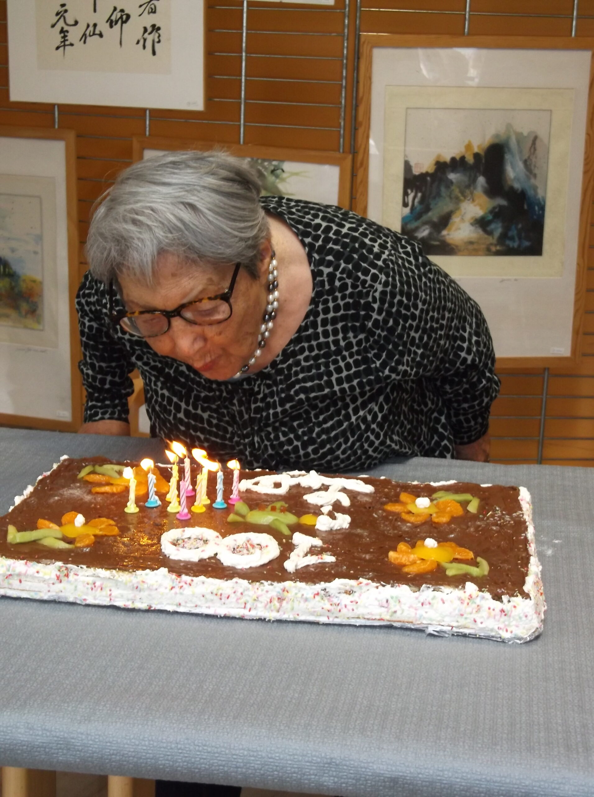 Jeanne est en recherche constante de techniques et d’interprétation. Sa créativité prend des formes vraiment très diverses et au gré des années, elle expose régulièrement et remporte plusieurs prix. Ses derniers tableaux ne sont plus figuratifs et témoignent d’une sensibilité extrême orientale qui la rapproche du peintre Zaou Ki. Depuis son arrivée à l’Ehpad « Le Châtelet », elle a encore réalisé quelques petites œuvres à l’encre de Chine. Celles-ci demeuraient mises en valeur en cette journée célébrant le centenaire de Jeanne.