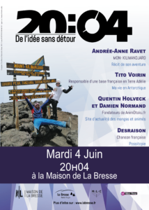 « 20h04, de l’idée sans détour », ce sont des soirées conçues pour tous ceux qui ont envie de découvertes, de curiosités, d’ouverture d’esprit…