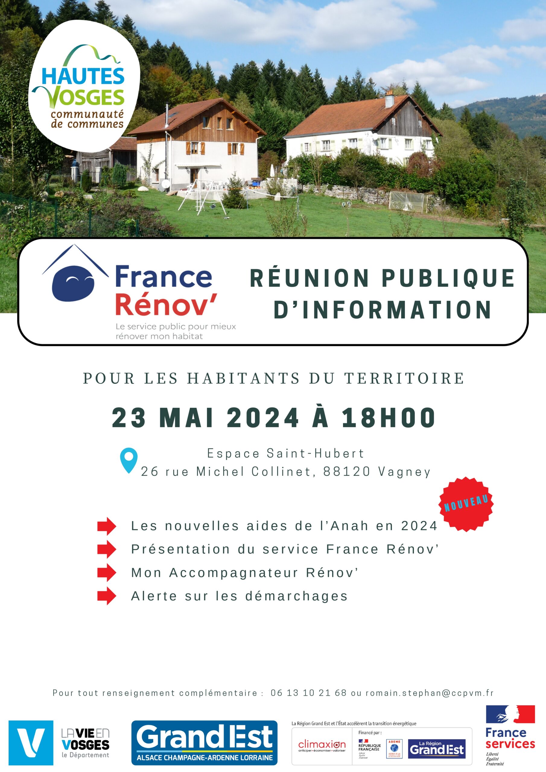 Quand on souhaite rénover son habitation, il est souvent bien utile d’être conseillé : aides financières potentielles, professionnels habilités, meilleures solutions de rénovation. Les habitants des 14 communes du territoire de la CCHV sont donc conviés à une réunion destinée à les informer sur le Service France Rénov’.