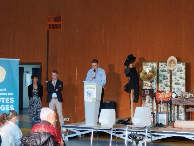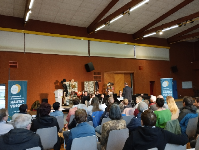 Erik GRANDEMANGE, Vice-Président Délégué aux Sports, Loisirs et à la Culture, a ensuite pris le relais pour dire quelques mots sur l’importance de ce festival, vitrine de la politique culturelle dynamique de la CCHV. Il a poursuivi en remerciant l’ensemble des acteurs et financeurs de ce beau projet culturel qui couvre l’ensemble des 14 communes de la Communauté de Communes des Hautes Vosges ce qui permet d’apporter une offre culturelle riche et variée au plus près des habitants du territoire.