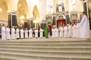 L’église était bien remplie, car tous ces jeunes étaient accompagnés par leurs parents, parrains, marraines, grands-parents… ainsi que par les animateurs qui les ont accompagnés tout au long de leur chemin de préparation.