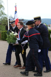 Enfin, une gerbe a été déposée au pied du monument aux morts par Monsieur le Maire et les représentants des autorités présentes. La cérémonie s’est clôturée par le salut des représentants des autorités aux porte-drapeaux.