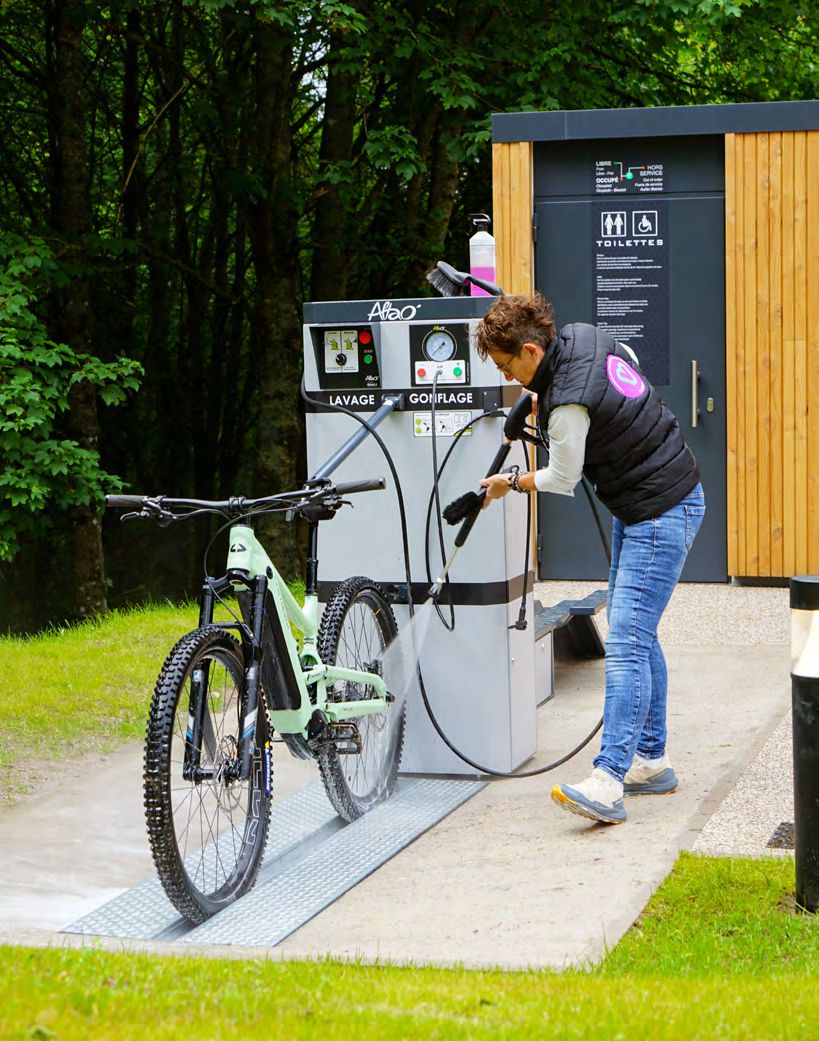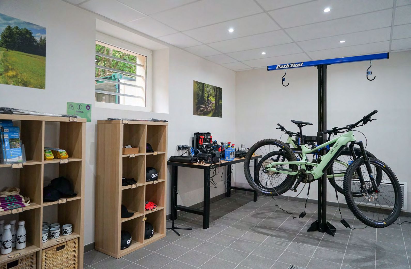 Du petit matériel de réparation pour les vélos y sera proposé dans un second temps. Par ailleurs, une station de lavage ainsi qu’une borne de réparation contenant divers outils est à la disposition des vététistes à l’extérieur du bâtiment, pendant les horaires d’ouverture du point d’accueil.