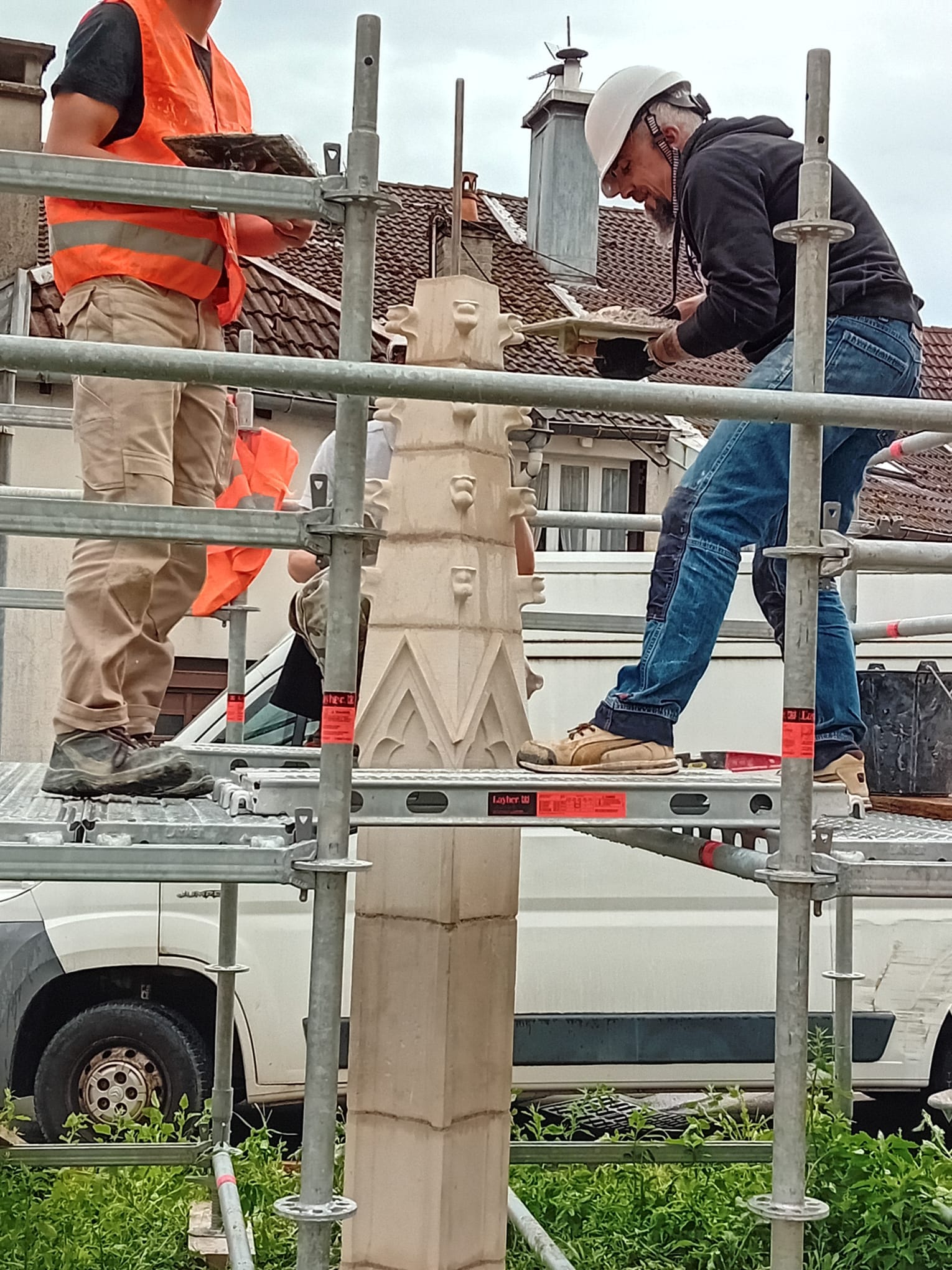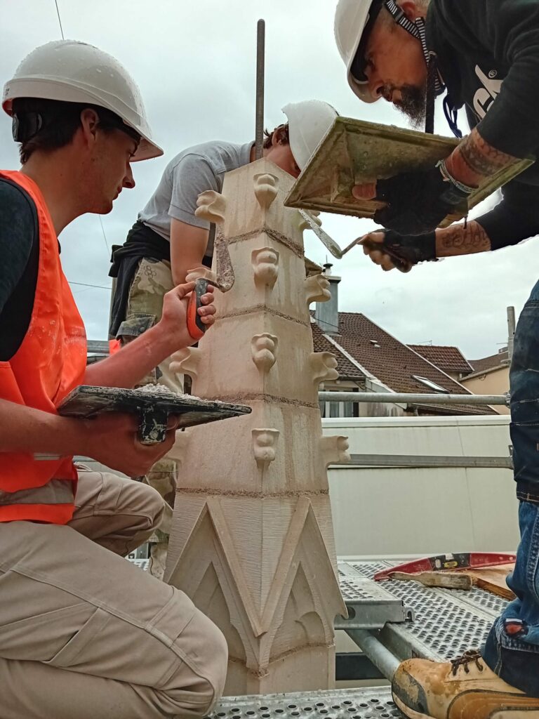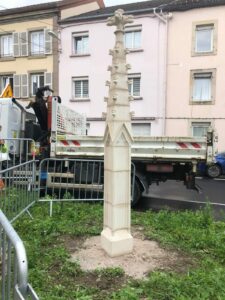C’est une belle réalisation qui vient de prendre place en ce début de semaine rue de la Courtine. Il s’agit d’un pinacle d’une hauteur de trois mètres, une œuvre sur laquelle travaillaient depuis plusieurs mois les élèves du brevet professionnel « taille de pierre » du lycée Camille Claudel.