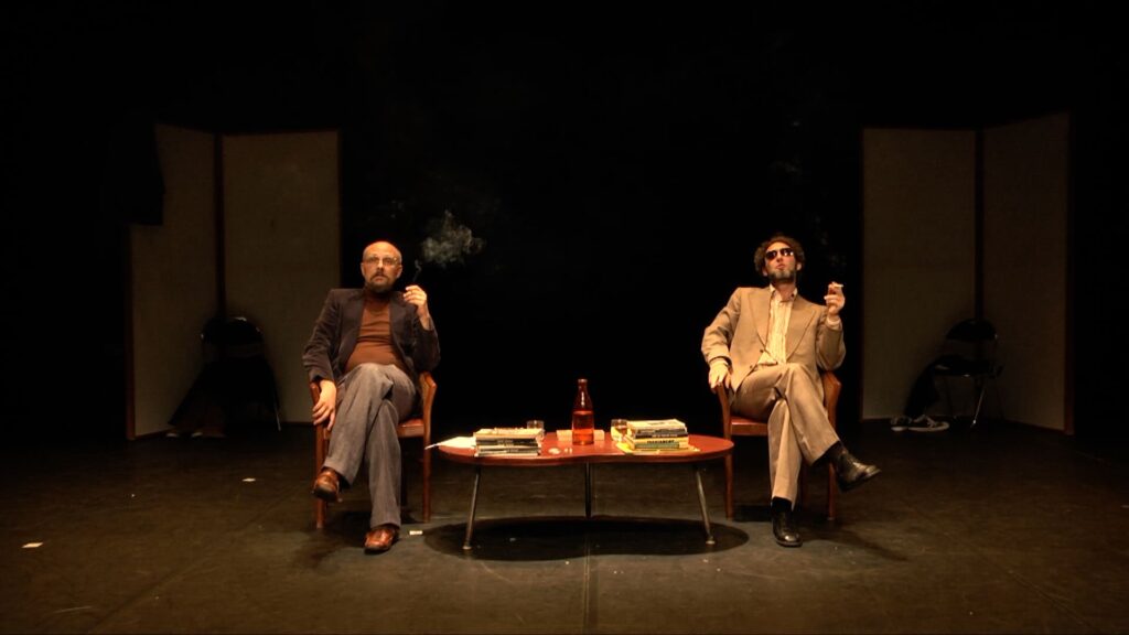 LE CASQUE ET L’ENCLUME est une vraie fausse émission de radio en direct et en public, à ceci près qu’elle se passe… au début des années 70. Dans l’ambiance enfumée d’une station de radio locale, deux experts en théâtre ont concocté une émission spéciale: Que sera le théâtre, la culture et la France en général dans 50 ans?… C’est-à-dire aujourd’hui!