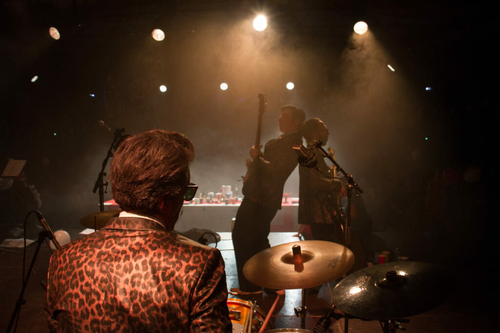 Quand elle ne tourne pas avec « Surprise-Party chez les Capulet », la formation musicale de la Cie MAVRA sillonne les routes de l’Est pour déchainer les corps et réchauffer le climat. Avec ses tubes rock n’roll, disco, funk, pop et new wave, « Une Suze et au lit ! » débarque cet été à Vagney pour faire danser le Théâtre de Verdure !
