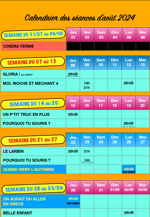 Programmation du mois d'août