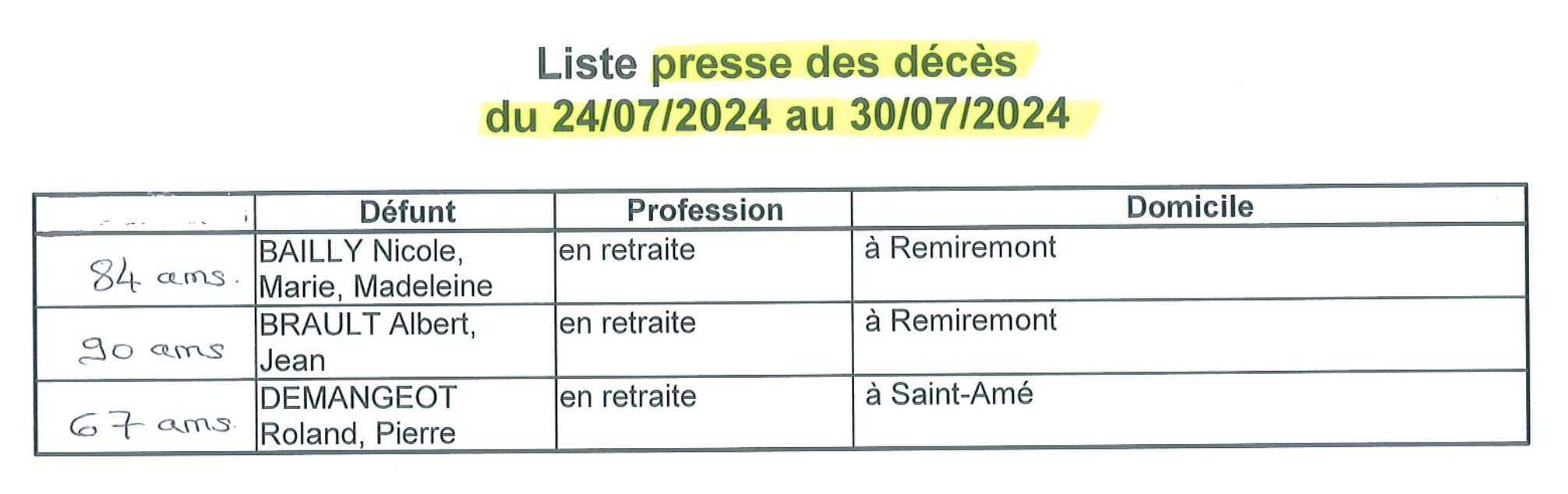 Deprecated: Use of "parent" in callables is deprecated in /project/VIDEV/web/app/plugins/simple-lightbox/includes/class.options.php on line 501 État Civil - Les naissances et les décès de la semaine - Remiremont Info