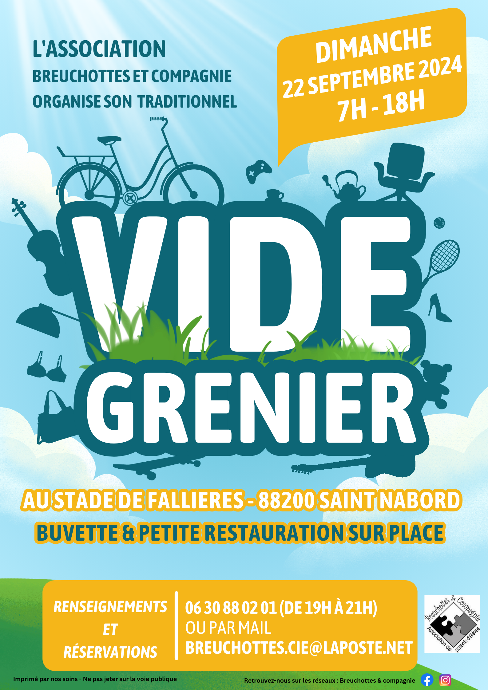 Nous organisons un marché aux puces qui aura lieu le dimanche 22 septembre, de 7h à 19h, au Stade de Fallieres à Saint Nabord.